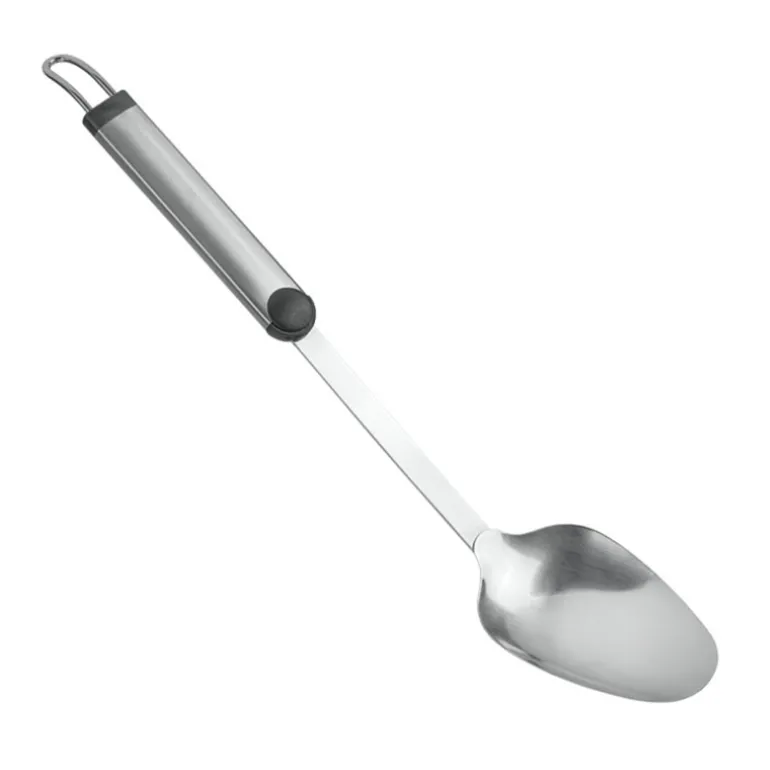 - Cuillere a sauce inox PLAZA-outil et manche inox-outil monibloc-anneau de suspension ovale-embout plastique-taille 33.5cm