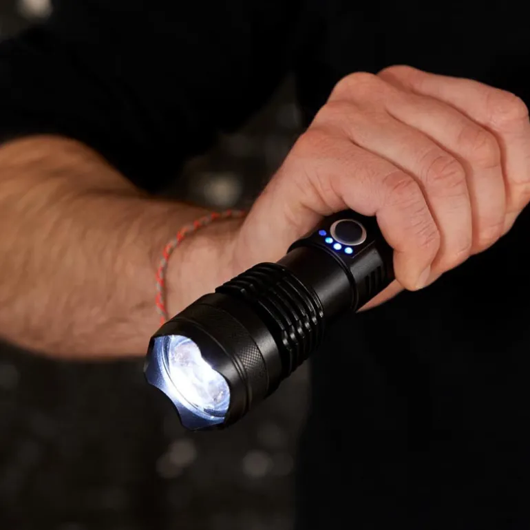 - 3 Fonctions :100% eclairage70% eclairageFlashA charger avec un cable de type C