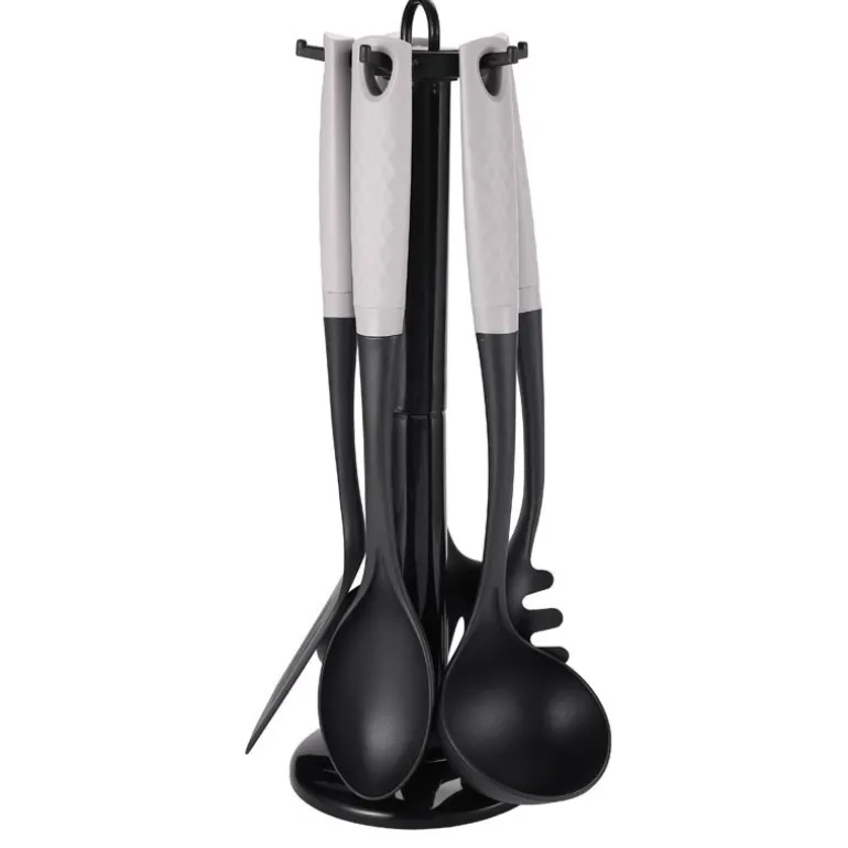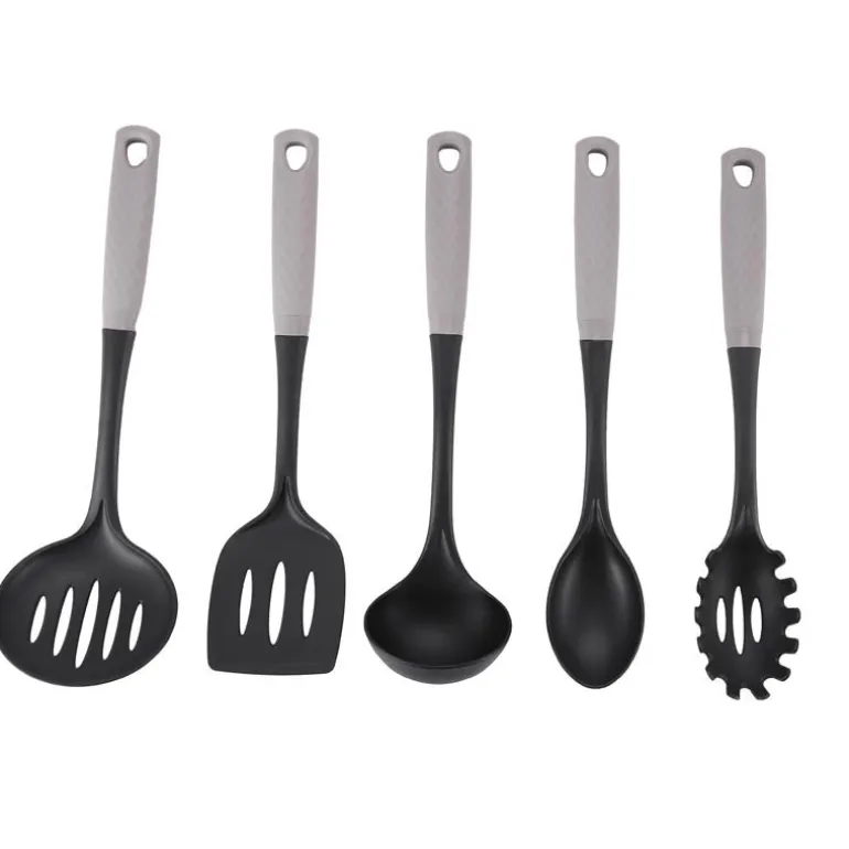 - 1x louche 35.4*9.2*7cm1x cuillere 35.6*6.2*3.1cm1x cuillere perforee 36*11*8cm1x spatule perforee 35.3*8.5*5.7cm1x cuillere a spaghettis 35.6*6.3*3.9cm