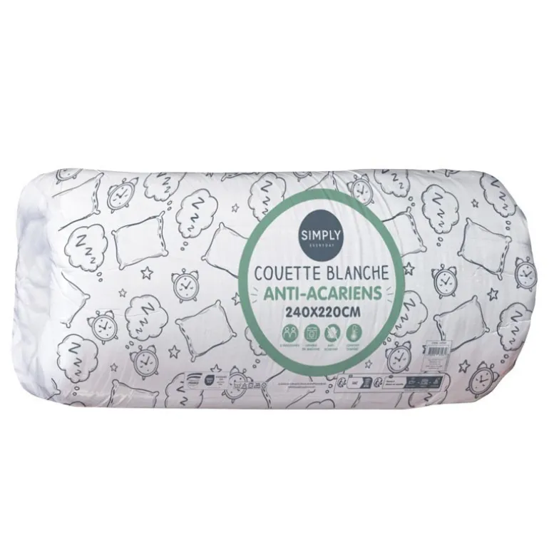 - ENVELOPPE MICROFIBRE 100% POLYESTER TRAITEE ANTI-ACARIENSGARNISSAGE 100% POLYESTER SILICONE CREUXPOIDS 250G/M2 – PIQUAGE LIGNE – FINITION SURJET – ROULEE SOUS SACHET IMPRIME