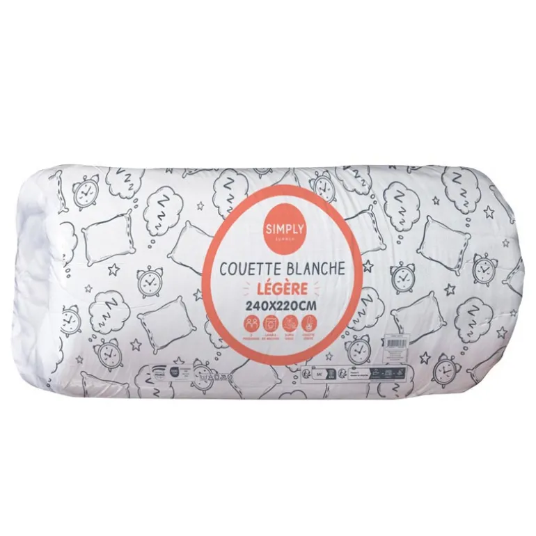 - COUETTE LEGERE MICRO 72G – GARNISSAGE 100% POLYESTER SILICONE CREUX 150G/mA² – PIQUAGE LIGNE – FINITION SURJET